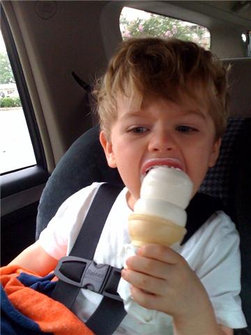 We have been having so much fun this summer with friends and family. We have spent lots of time trying to find cool places, preferably with water or ice cream, to cool down with. Here are some pics of our summer fun so far... Playing/Running from the water coming from the sprinkler at Nona and Papa's house in Auburn